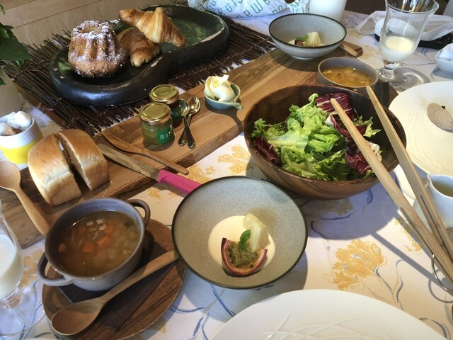 新鮮なお野菜にスープ、たくさんのパンとジャム、ミルクどちらも最高に美味しかったです。
