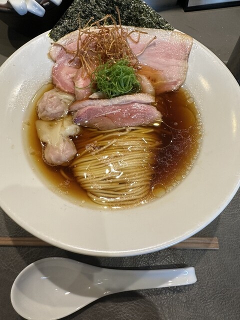 Ramen Break Beats の醤油ラーメンは、ミシュランガイドのビブグルマンにも選ばれる人気店らしい洗練された一杯。店主自ら整えられた美しい麺線が特徴的で、透き通った清湯スープは地鶏の旨味と醤油の香ばしさが重なり合い、上質で奥行きのある味わいが口の中に広がる。中細ストレート麺のツルッとした食感と、バランスの良いスープとの絡みが秀逸で、最後の一滴まで飲み干してしまう魅力があるとの評判だ。チャーシューなどの具材もそれぞれ丁寧に仕上げられ、見た目の美しさと味の完成度の高さが印象に残る。予約必須の人気店として、特別感のある醤油ラーメン体験ができる。