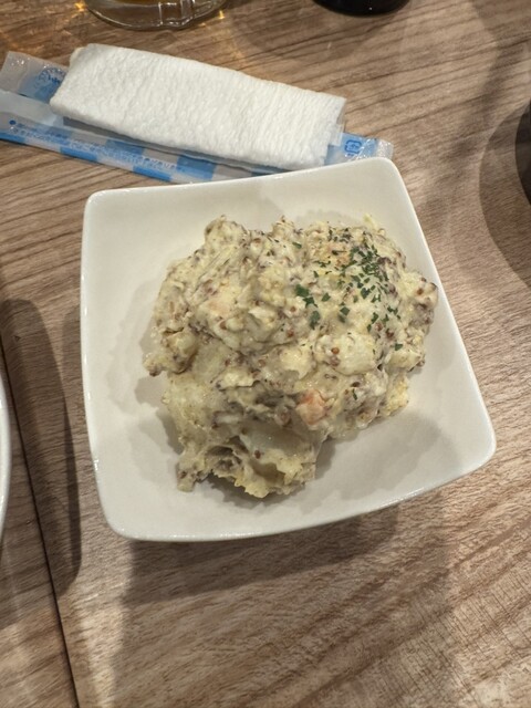 行ったのは二軒目で、結構お腹いっぱいだったんですが、懐かしさもあり、思った以上に頼んで腹パン、ガツ刺しも良い歯応えでビールが捗り、ポテサラはねっとり粒マスタードが効いててこれも良いつまみで、ビールなくなる。