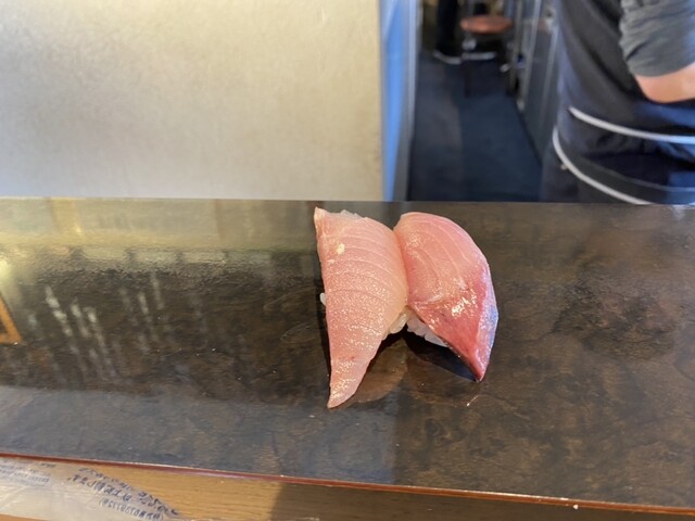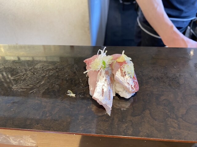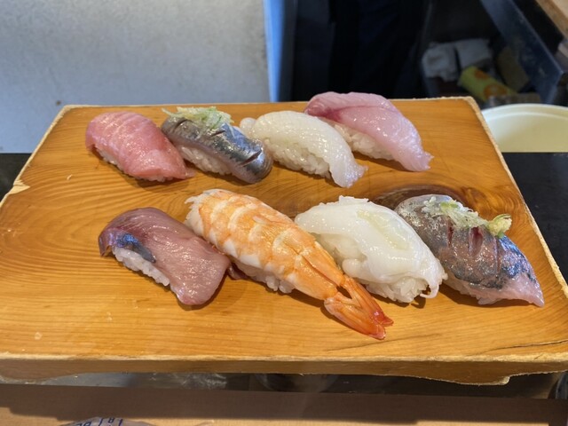 今回は、別館限定セットのおまかせ握り(8貫)と本日のおすすめの天然ぶり・アジをオーダー。