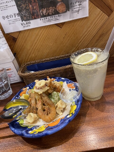 まずはフリット。タコ、エビ、白身魚などの盛り合わせで色々食べれて美味しい。その後に、贅沢にカルツォーネ♡