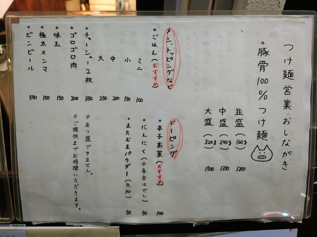 メニュー(つけ麺の日)