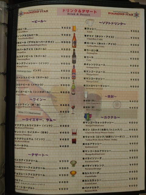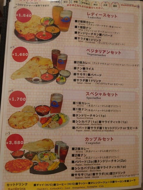 カレーは6種類から、ソフトドリンクは7種類から選べます。
