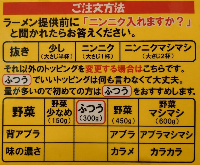 大汁なし(ニンニク少し ヤサイマシマシ アブラ カラメ アレ)を注文しました。