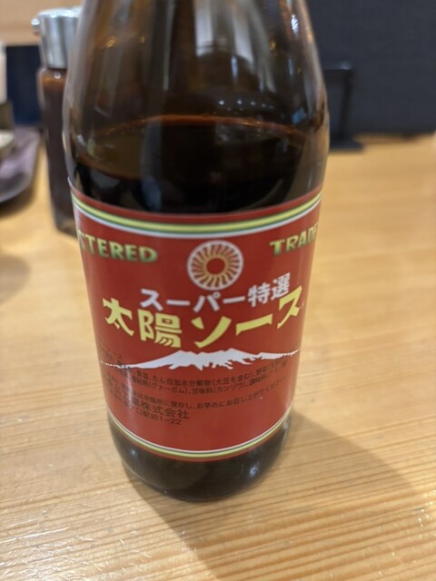 ソースはとんかつソースの他に、初めて見る太陽ソースなるウスターソース、そして塩があります。