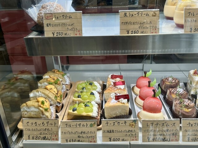 生シュークリーム、フルーツタルト(シャインマスカット)、米粉のロールケーキ
