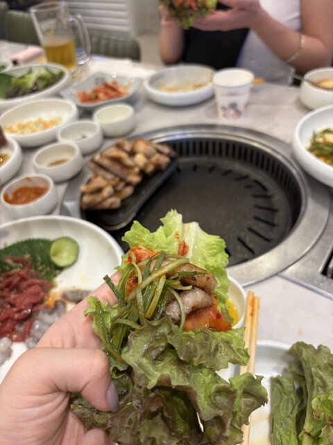 4:00amまでやっているお店!!23:0ごろに行きましたがずーっとお客さんが入ってきました!!もう!!本当に美味しすぎる!!ビールとサムギョプサル、ユッケが最高!思い出したらまた食べたくなってきた!!おすすめです!!