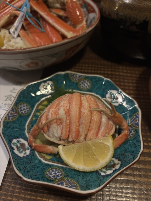 蟹の季節なので、蟹を!事前予約の際に注文しました。結構ボリューミーでお腹いっぱいに。魚が美味しすぎて日本酒と相性抜群。店員さんもとても親切でまた行きたいと思えるお店です。