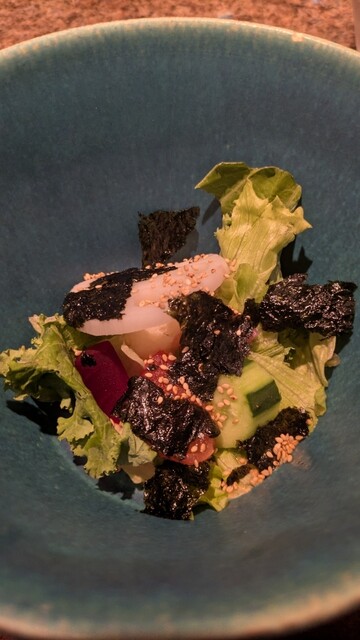 先輩との女子会で、12品18,000円ほどの贅沢なコースをいただきました。飲み物は100%フルーツジュースでノンアルにしました。