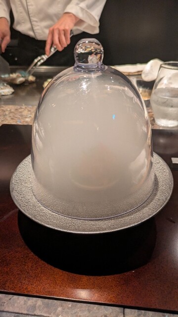 お店の入口から特別感が漂い、重厚感のあるカウンターに座ると、目の前で繰り広げられる鉄板パフォーマンスに心が高鳴ります。料理長の優しい声かけとともに運ばれるお料理は、一品ごとにサプライズと感動がありました。トリュフ香る冷製パスタや燻製サーモン最中のように遊び心ある前菜から始まり、調理前はまだ元気に動いていた蝦夷鮑の塩釜蒸し、そして選んだ黒毛和牛の鉄板焼きは、香り・食感・旨味のすべてが別格。ガーリックライスと赤だしでほっと落ち着き、最後はこだわりのプリンと紅茶で幸せな余韻に包まれました。記念日や大切な人との時間にぴったりの一軒。また必ず訪れたいと思える、心からおすすめできる鉄板焼き店です。