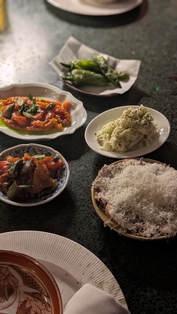虎ノ門ヒルズ駅から歩いて数分の場所にある「smuk tokyo」。一見すると静かな通り沿いにありますが、一歩足を踏み入れると別世界。1960年代のインテリアをベースに、赤を基調としたアートな空間が広がります。照明、椅子、テーブルの質感に至るまで統一されたデザインは、まるで映画のワンシーンのよう。アートディレクターが手がけたというだけあって、その完成度の高さに圧倒されます。客層もどこか洗練されていて、ファッション業界やクリエイティブ職の方々が多い印象。店全体が刺激的で、五感が研ぎ澄まされるような空気です。料理はアラカルト中心のイタリアンで、すべて炭火で焼き上げているというこだわり。グリルしたイカの香ばしさ、2年熟成のポテトのほのかな甘み、ジューシーな肉の旨味——どれをとっても印象的。パンや野菜も素材の良さが際立っていました。締めのピスタチオアイスとキャビアワッフルも絶品で、遊び心と上質さのバランスが絶妙。おしゃれな空間で美味しい食事を味わう時間は、まるで感性を刺激する体験そのもの。これからますます予約が取りにくくなりそうで、少し不安になるほど素敵なお店です。