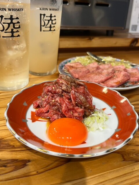 名物 豪快はらみ、和牛炙りゆっけ、羽柴家のきくキムチ、ねぎたん、薄切りたん ゆずにんにく 、らいすと、ドリンクをいただ...