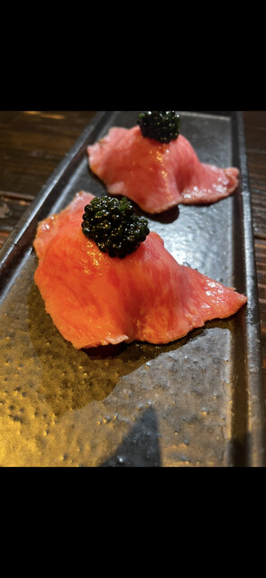 昨年度に引き続き、記念日に行きました!昨年度は新橋コースにしましたが、今回は極みコースにしました!コースの場合、店員さんが焼いてくださりますが、絶妙な焼き加減で提供してくれます!また、8種類のタレなどがあり、それぞれの肉ごとに使うものが決まっていますが、確かにそのタレを使うのが1番美味しいと思いました!どの肉もとろけるように美味しいのですが、その上で個人的に美味しかったのが、キャビアが乗った炙り肉寿司と、いくらとユッケでできた輝く肉ら です!あとは黒毛和牛サーロインの焼きすき焼きと、黒毛和牛サーロインwithウニです!