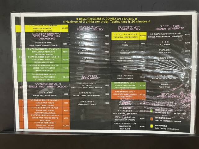 宮城峡シリーズだけではなく、北海道の余市シリーズの飲み比べもあります。竹鶴やグレーンウイスキーもあり、少し値段はしますが、ニッカウイスキーで様々な種類を飲めるのは蒸留所ならではだと思います。