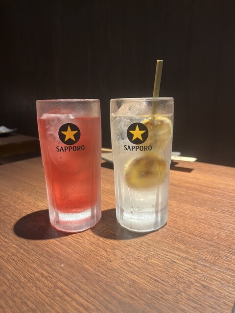 炭焼きレモンサワー(¥500)と謎サワー(¥500)で乾杯