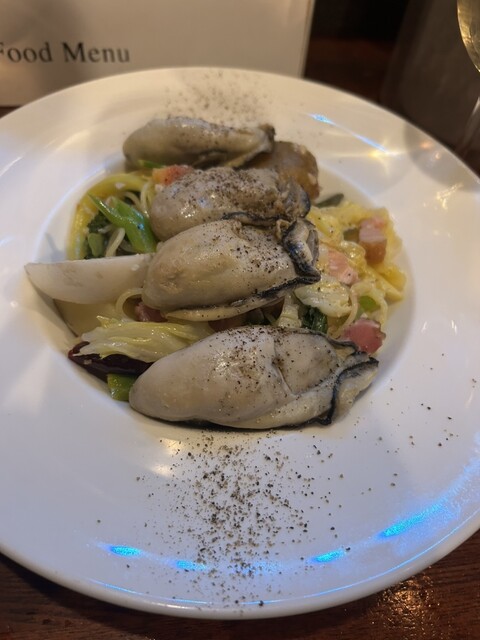 恵比寿駅近くのオイスターバーで、生牡蠣の盛り合わせと季節のパスタをいただきました。