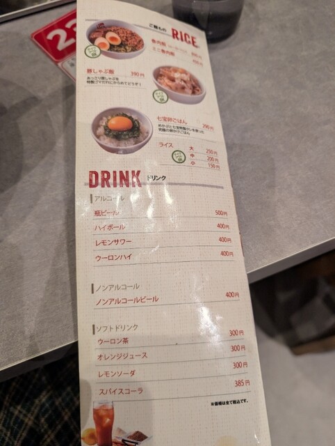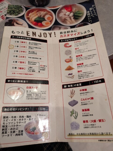 中華麺・こんにゃく麺・海藻麺・春雨(大盛・替玉)と選択肢多め。