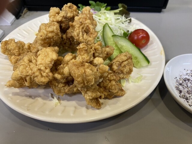 ミニサラダ、スパサラ、鳥の唐揚げ、焼き豚、