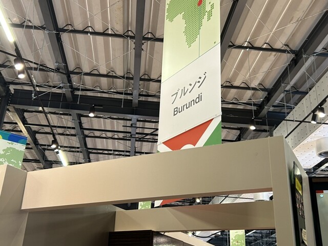 コモンズAの奥にブルンジの展示スペースとカフェスタンドがあります。