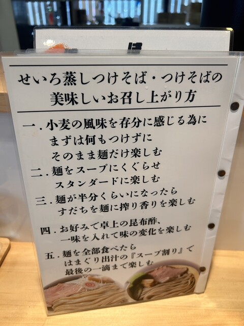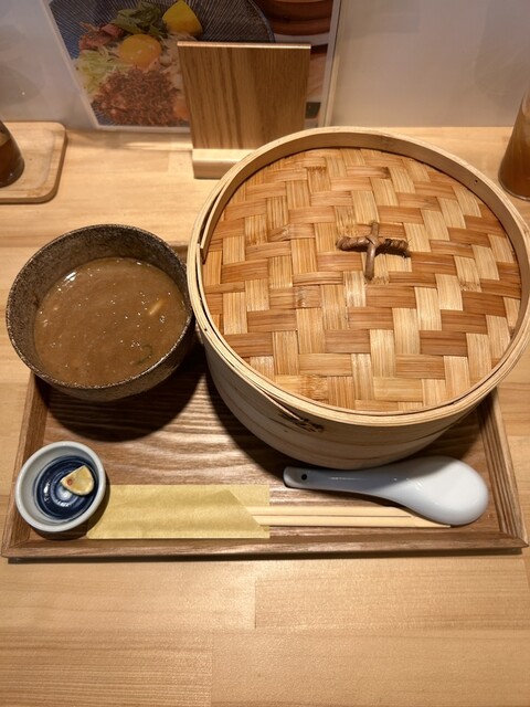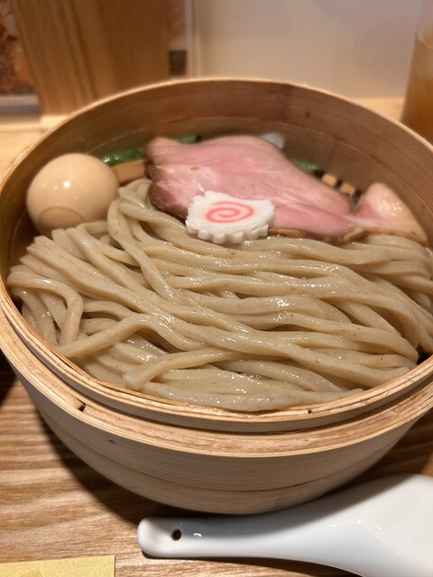 以前より気になっていた製麺所が作ったつけ麺屋「麺はやし」。平日ランチで11:45ぐらいに1人入店、カウンターで待たずに着席できました。そして「味玉せいろ蒸しつけそば」を注文。