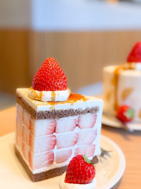 ナッペ部分がきなこクリームで、いちごの中は甘さ控えめの生クリーム☆