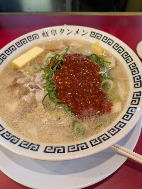岐阜タンメン5辛麺硬め肉増しニンニクまではデフォ。
