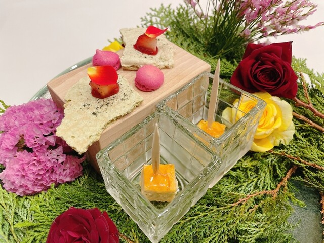 ・蓬のチュイルや、中川シェフが手がける王様のチーズケーキ!甘味もあり爽やかさもある味わいでした!
