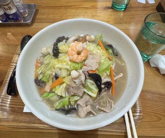 スープがうまい。麺もイメージ通りのちゃんぽん麺。具材もたっぷり。