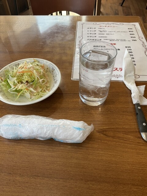 サラダを食べて待つ