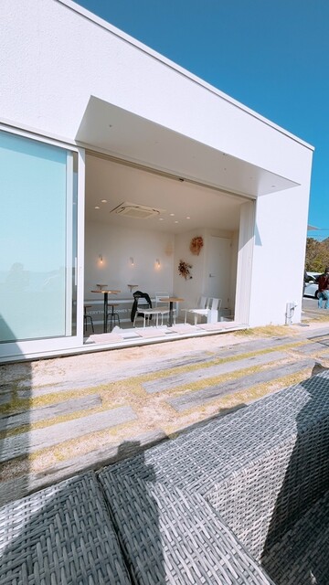 国道から 白い建物 素敵カフェの雰囲気放ち ワクワク 子高い敷地へ坂を上り駐車場も混み混み