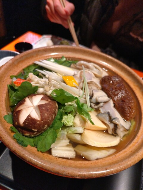 ラストOrderと継げられつれがOrder!私は蕎麦は食べなかったけど汁をもらいました。見た目から土瓶蒸しとは異なるし、鴨肉も追加されてるので、コクのある蕎麦汁でした。つれも蕎麦と共に松茸、鴨肉とともに満喫してました。