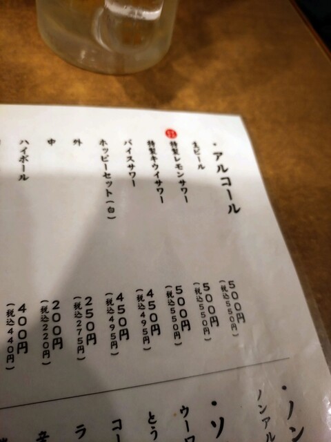 生レモンはデフォルトでは無いので生レモンサワーのを留学しました。こちらもアルコール感低い…薄い…。