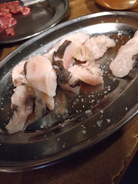 こちらも初めてかものタンシタです。牛の舌(タン)の、舌の付け根部分にある部位だそうで、そのままの名称ですね。味付けさてれてるのでそのままや、やはり先の2つの醤油ベースと食べました。タンとは言っても、先の部分ではないためか、少しコリコリした食感ですが、肉の旨味と脂旨味があり、美味しい部位だと認識しました。しかもタンサキ、タンナカに比べてかなりお安い。次回からこれも定番となるのかな。