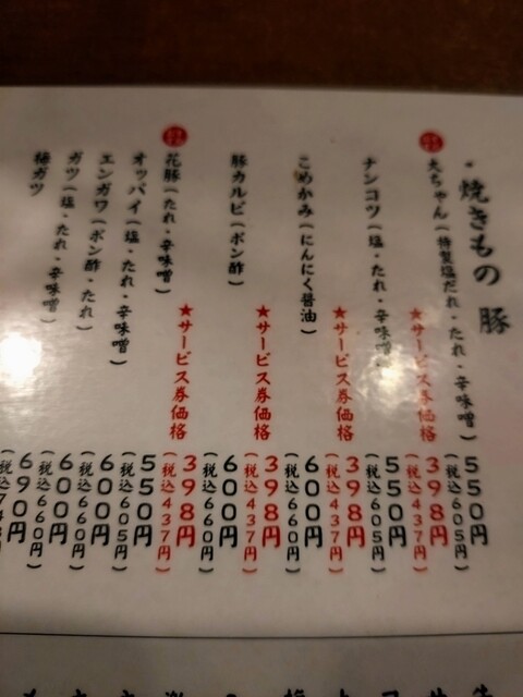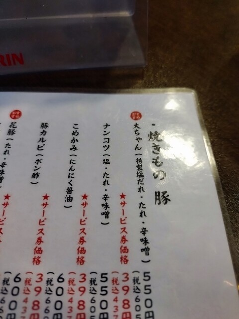 ご馳走様でした。支払い終わったら毎回、クーポンを頂きますが…なんと…新たなクーポンは値上がりして対象も変更されています…。豚カルビは…クーポン対象ではなくなってしまいました…殘念…。こめかみは引き続きクーポン対象ですが、税別¥100値上げでした。仕方ないですね。これまではたくさんのクーポンを使わせて頂きました。引き続き新しくクーポンも使います。