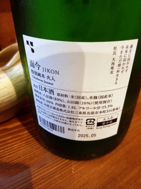 過去こちらに来た時に飲んで旨いと感じた日本酒ですから、これから始めました。温燗つけると冷酒の時とは異なった味わい、香りを楽しめます。酸味は柔らかですがしっかり感じます。