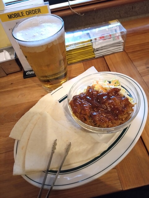 十年以上振りなプルドポークは肉も十分に柔らかくソースも柔らかめで美味しかった。コールスローとあわせ、しかもトルティーヤに包んで食べたのは多分初めてかも。以前はガッツリ肉!肉!として食べてた記憶があります。