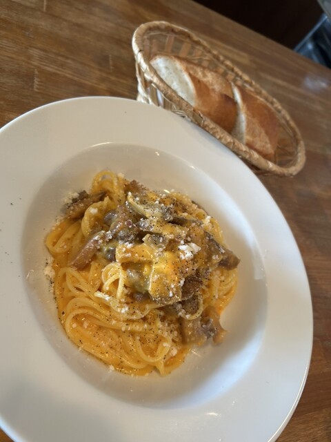 本日のパスタを見て色々と迷いましたが基本クリームパスタ好きなのでこのシーズン最後と思われる牡蠣のクリームパスタにしました。