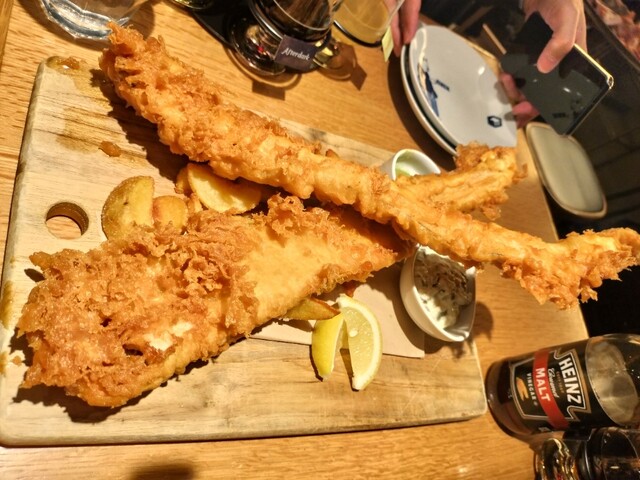 ビール飲み比べセット2人前、フイッシュ&チップスのレギュラーサイズ、前菜盛り合わせ??みたいなのを注文、追加でクラフトビール2杯