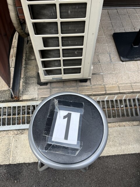 前から1〜4番目は丸椅子が置いてあり、座って待て、11時45分に入店しました〜