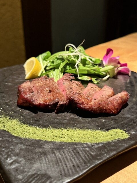 いつもレモンで食べる牛タン焼きですが、抹茶塩も風味も感じることができおすすめ。