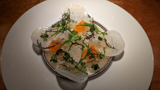 2ヒラメの昆布締めと蕪のカルパッチョ