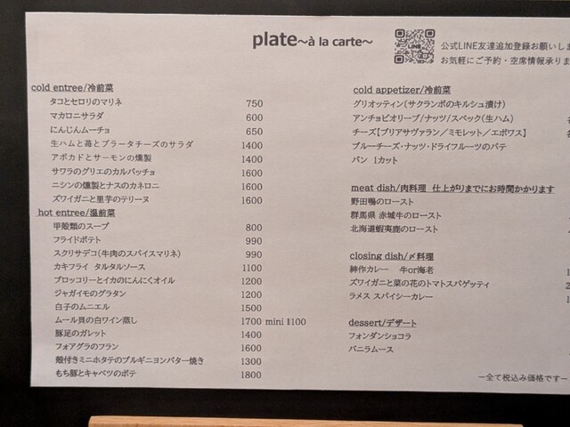 山根シェフと川床シェフのお料理が諸共に楽しめるお店、プラット。