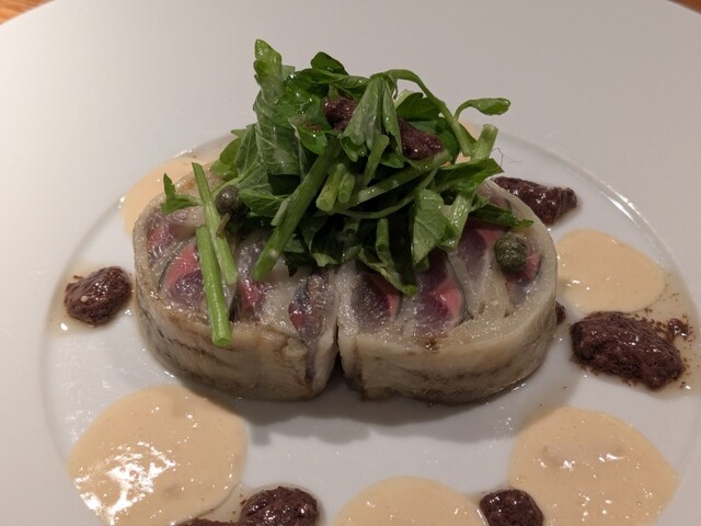 プラットを間借りして「ランコニュ」を営業されている川床シェフの仔ウサギのテリーヌも本当に良かったです。おおまさりもよく合ってますね。