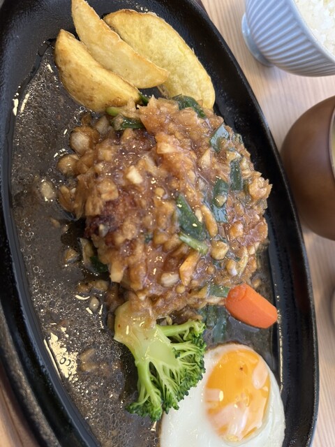 日曜日のお昼の来店。前に12組ほど待ちがありましたが、タイミングよくそこまで待ち時間はなく感じました。駐車場の車で待ち、時々あと何組か確認。写真はハンバーグ定食のしょうゆソース。ご飯がすすむ味。ハンバーグは柔らかいので年配の方や子供も食べやすいので人気なんだと思います。ハンバーグ定食1400円に値上がりしてました。お座敷やテーブル、カウンターがあります。テーブルはゆっくり食事できるので多少の待ち時間は気にならなかったです。テキパキとされてる店員さんがいて良かったです