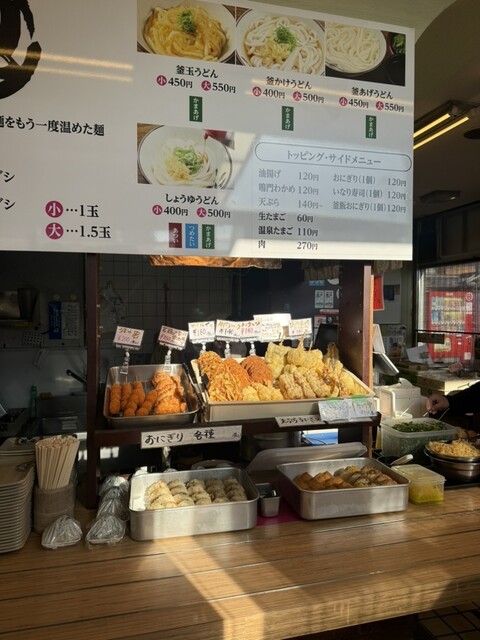 徳島でうどんをいただく中で、香川の流れをはっきりと感じさせてくれる一軒でした。セルフ式のうどん店は数多くありますが、このタイプでここまで接客が丁寧で、店全体の雰囲気が心地よいお店は初めてです。何より印象的だったのは麺で、しなやかさとコシのバランスが非常に良く、噛むほどに小麦の旨みが広がります。今回は【ぶっかけひや】に【鳴門のわかめ】をトッピングして680円。出汁との相性も抜群で、最後まで一切のブレがありませんでした。天ぷらは【いか】【なす】【うずらフライ】を選び、いずれも150円前後ながら満足度の高い仕上がり。さらに【あさりおにぎり】は120円ほどで、脇役に終わらない存在感がありました。あまりの完成度に、お土産用のうどんを24食購入。味・接客・空気感すべて含めて、心から「最高」と言える一軒です。