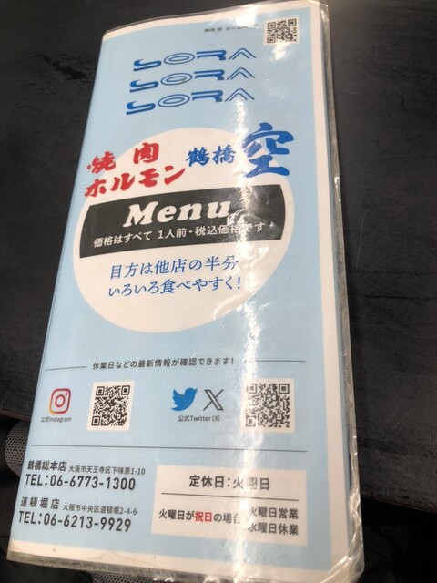 JR鶴橋駅から歩いて直ぐのところにある焼肉空、店の前をフラフラと歩いていると、『おひとり?どうぞ』と呼びかけられる。テンポよく全く違和感がない。