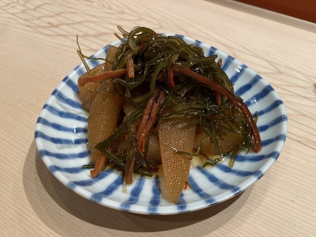 にぎりのお寿司の前にお任せでいろいろなお寿司中心のお料理が来ます。