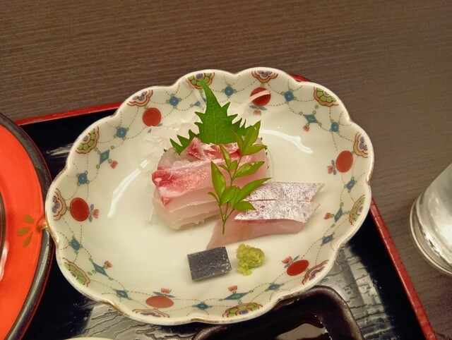 この日のおまかせ定食は、刺身、アカアジ