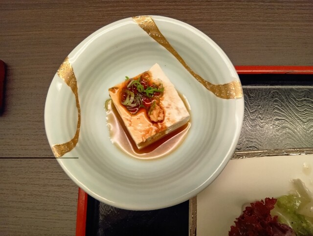前菜 胡麻豆腐 敷法蓮草ジュレ