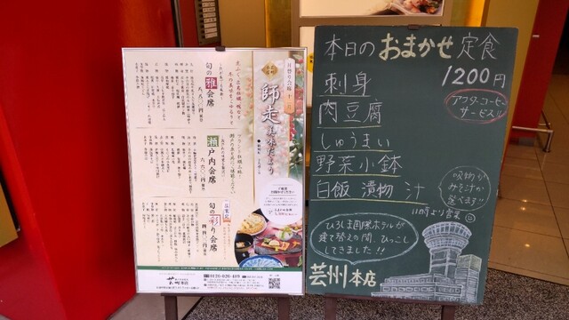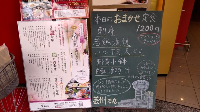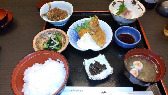 お刺身、天麩羅、野菜煮物、茶碗蒸しなど